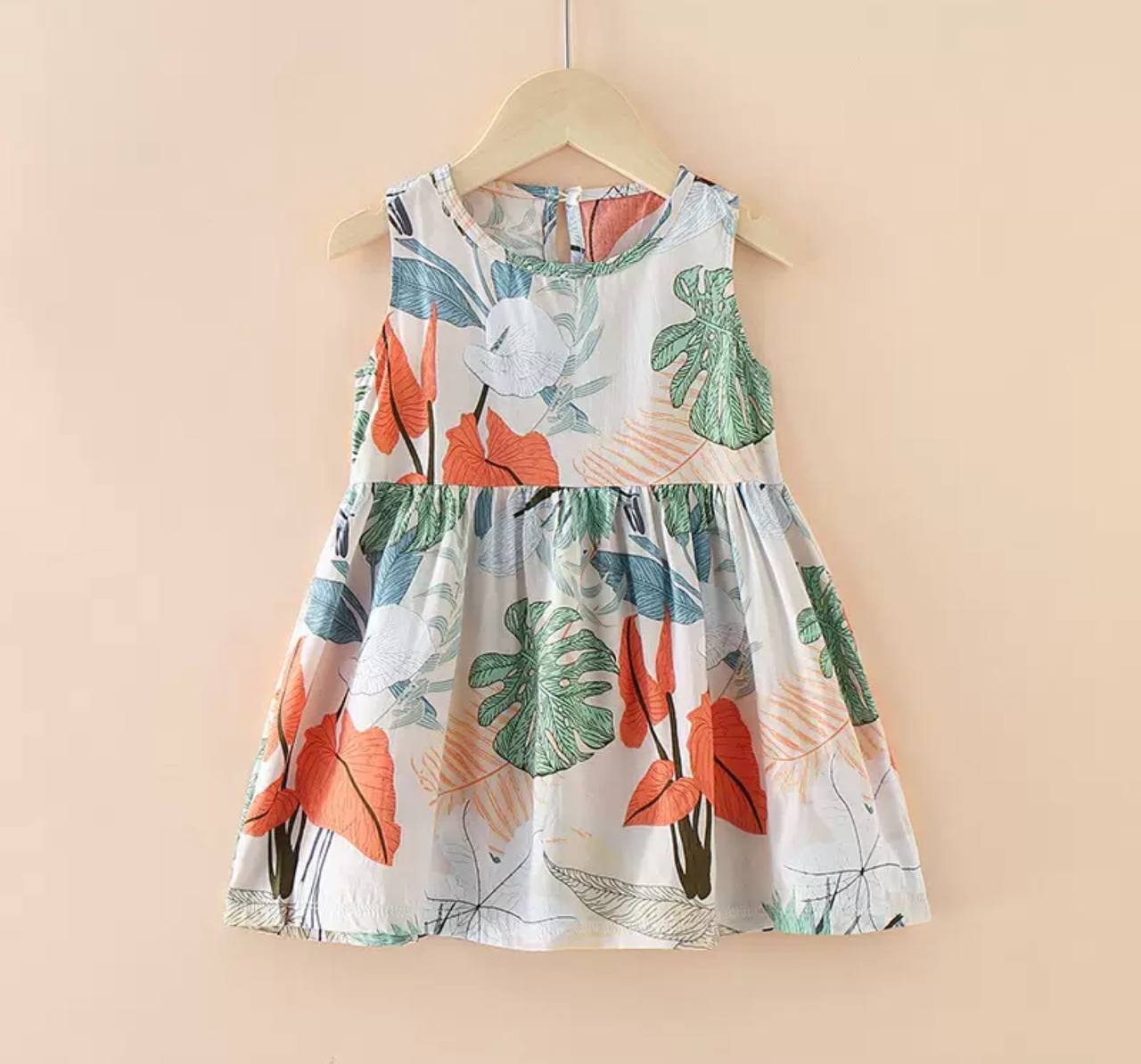 A lightweight and comfortable sleeveless dress made from soft, pleasant-to-the-touch fabric. It features a relaxed fit that allows for easy movement throughout the day. The vibrant print adds a playful touch and cheerful vibe, while the back zipper makes it easy to put on and take off. Perfect for outings, celebrations, or everyday wear during warm weather.